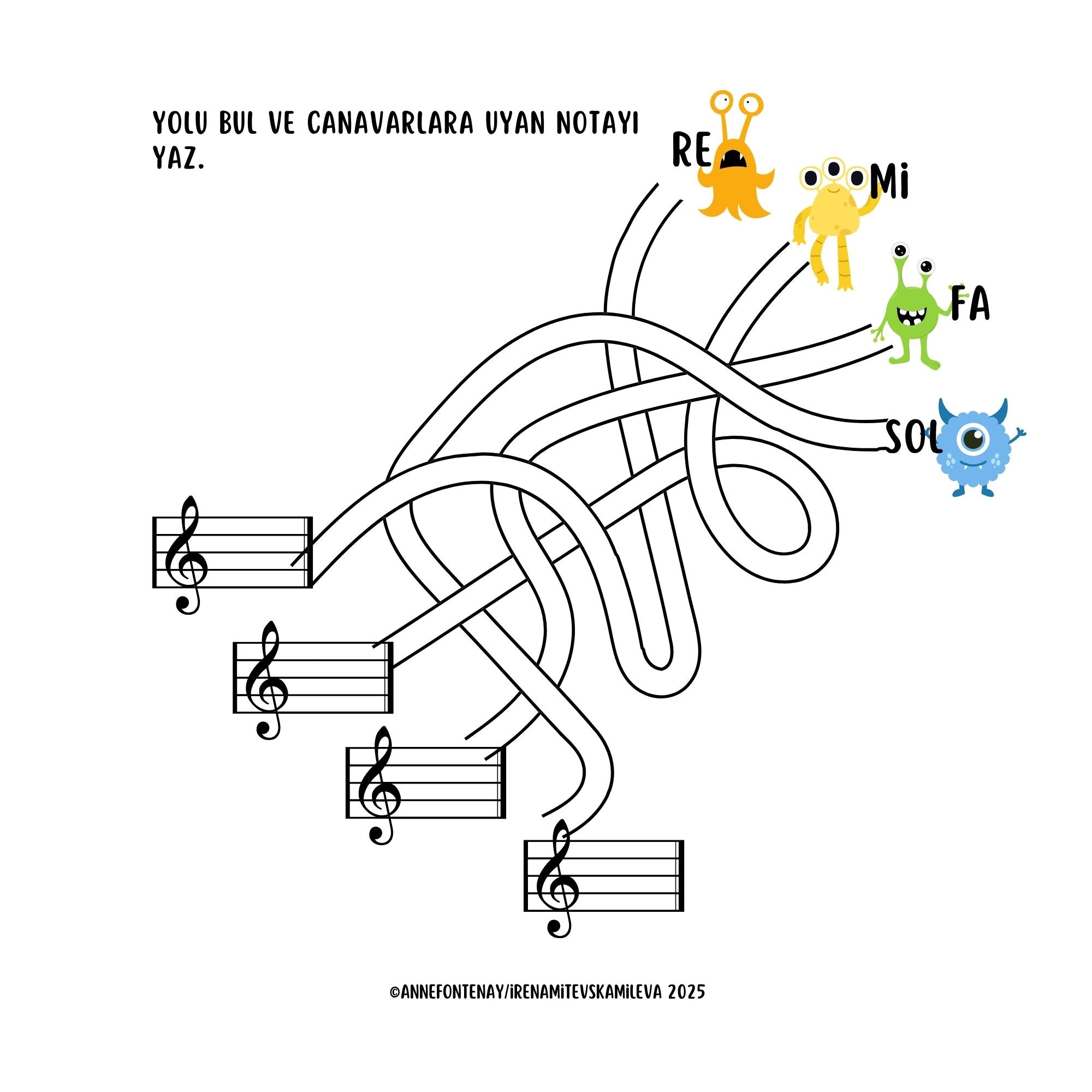 Öğrenciler, çeşitli görev ve alıştırmalara geçmeden önce müzik alfabetini öğrenirler. Harfleri notalarla birleştiren yaratıcı etkinlikler ve eğlenceli oyunlarla ritim ve nota bilgilerini pekiştirirler.