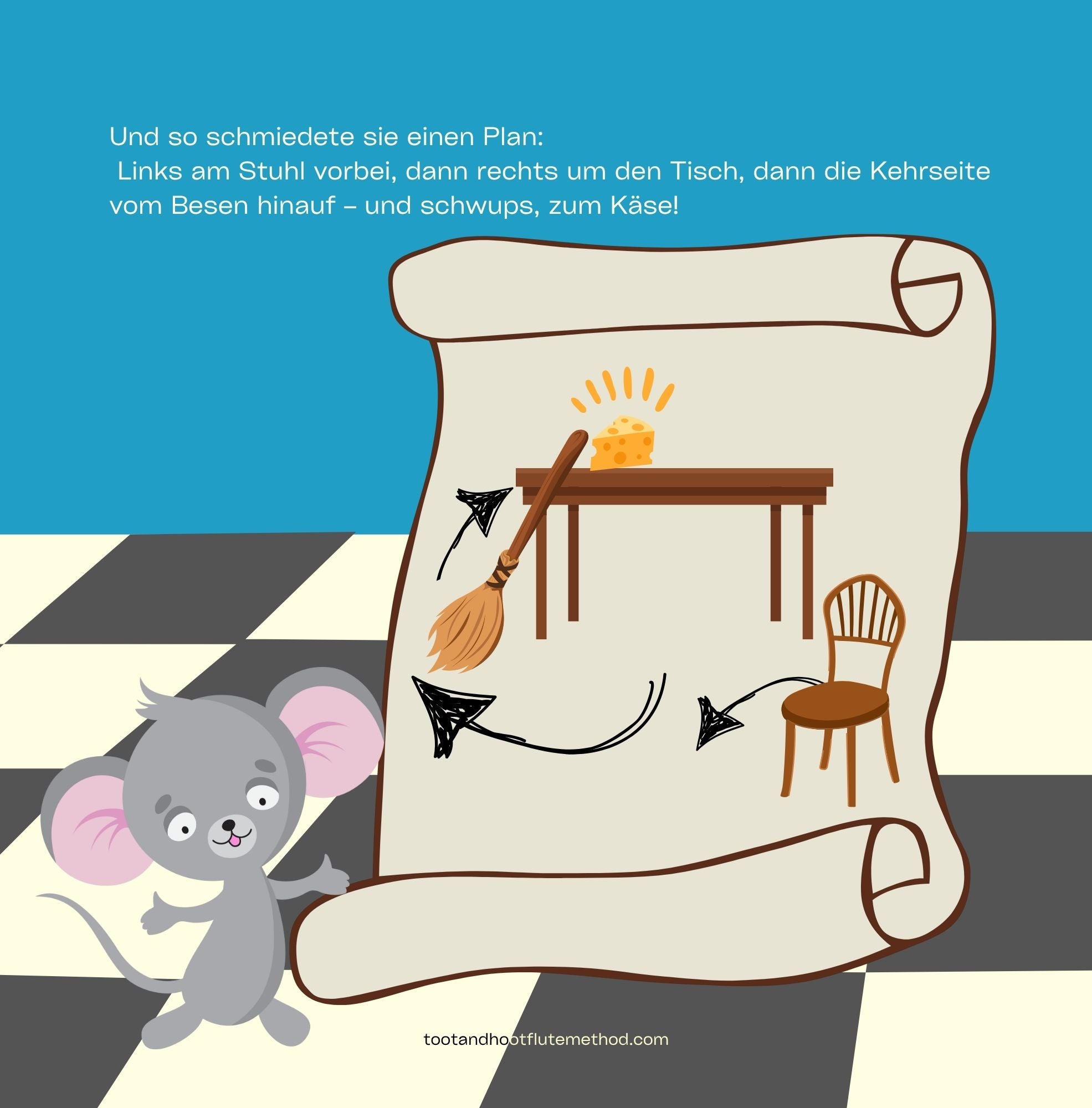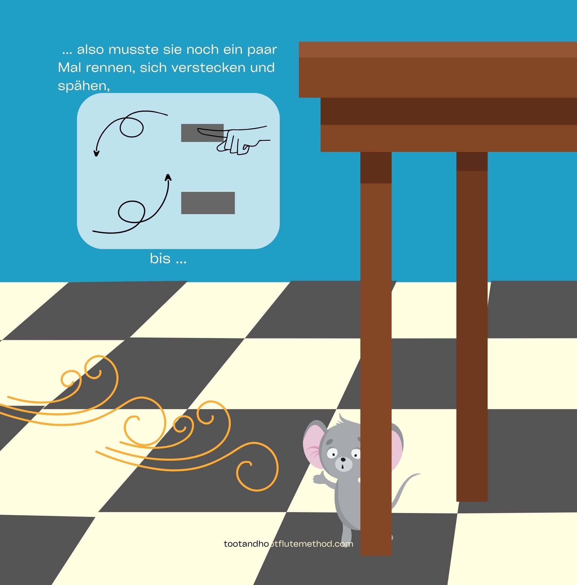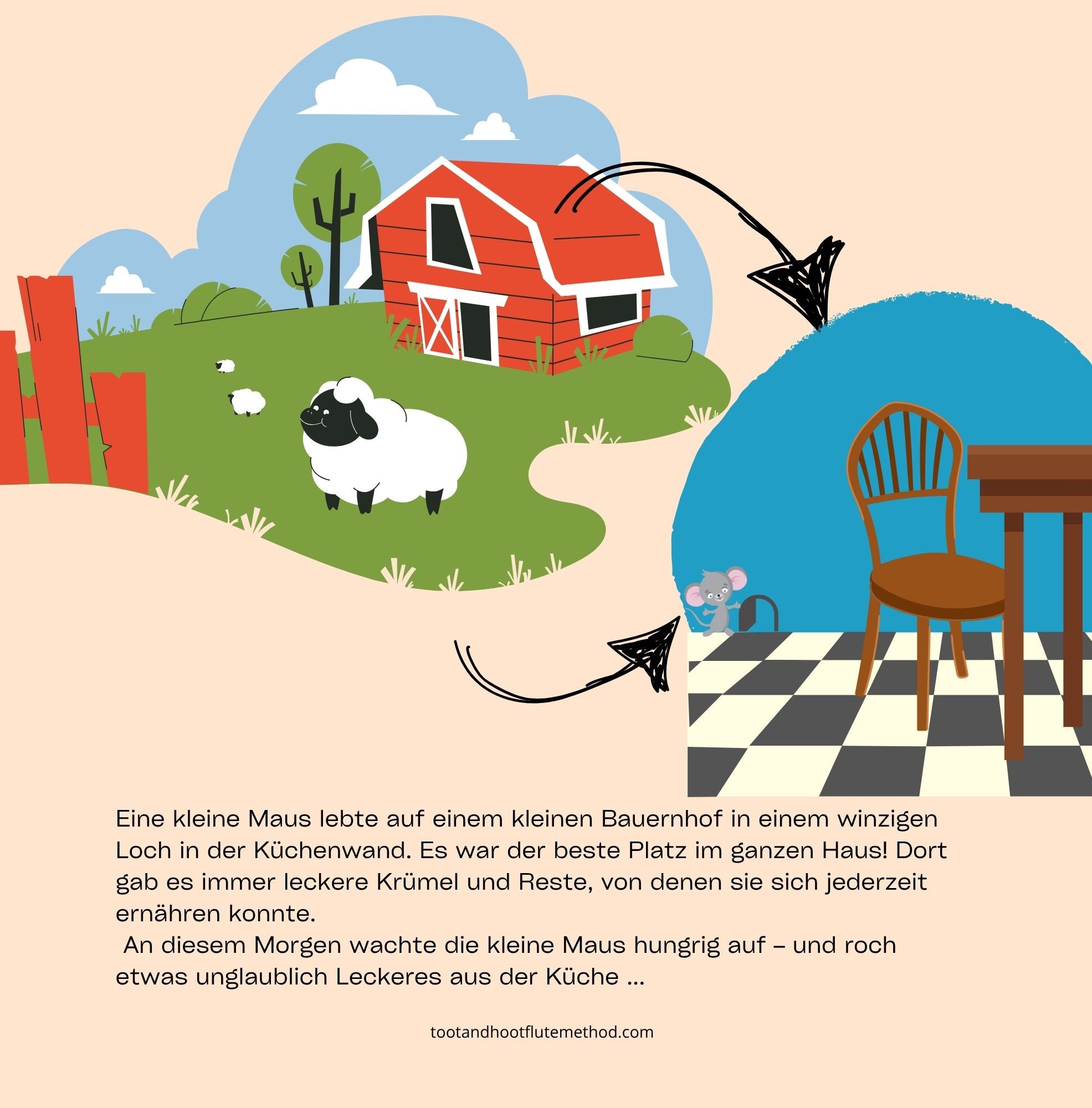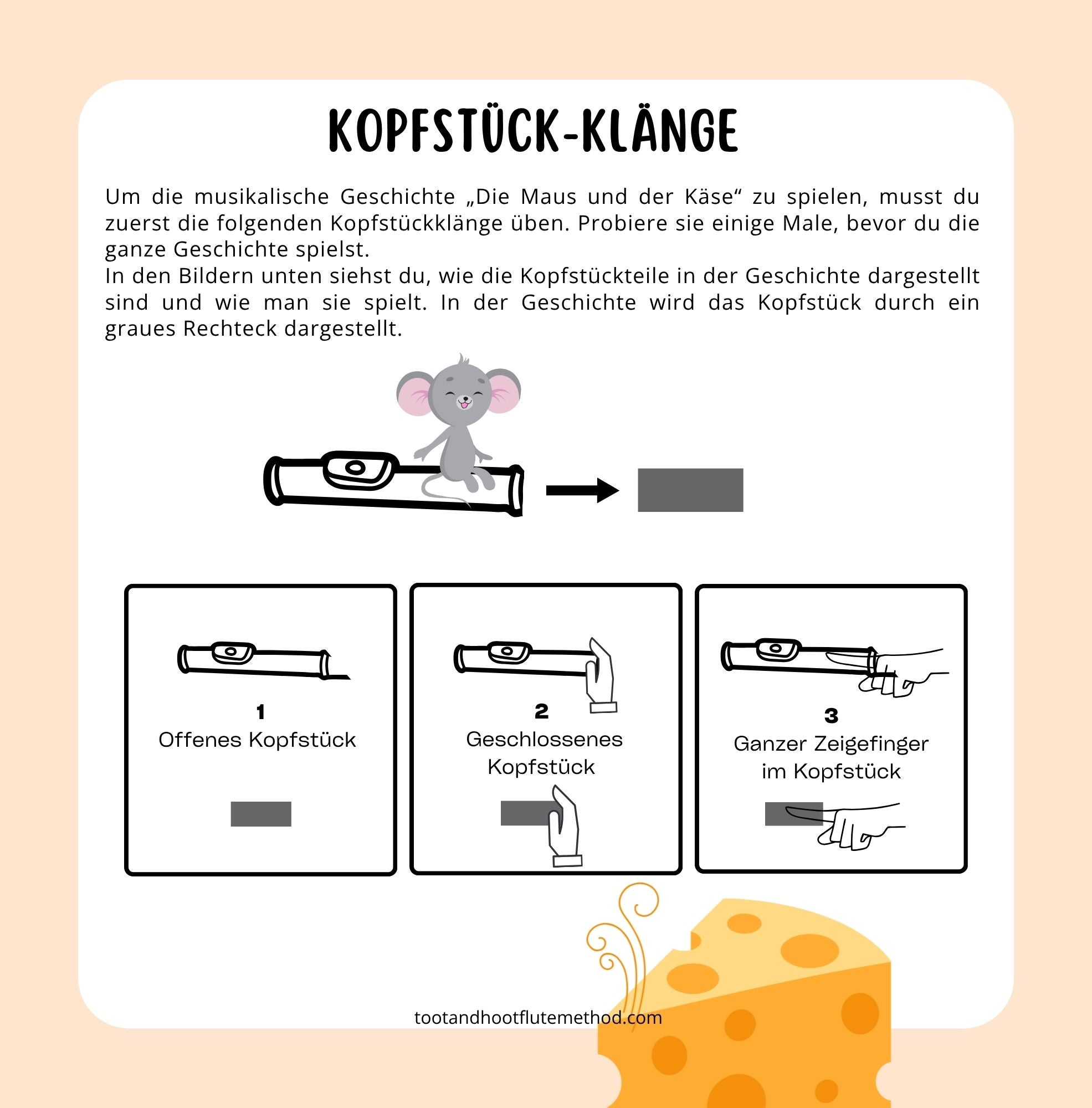 Diese unterhaltsame kleine Geschichte wurde mit dem Ziel geschrieben, den allerersten Zugang zum Flötenspiel spielerischer und spannender zu gestalten – geeignet für Anfänger:innen jeden Alters. Die Lehrkraft, ein Elternteil oder ein:e Freund:in kann die Geschichte vorlesen, während die Schüler:innen die passenden Geräusche auf dem Kopfstück erzeugen.