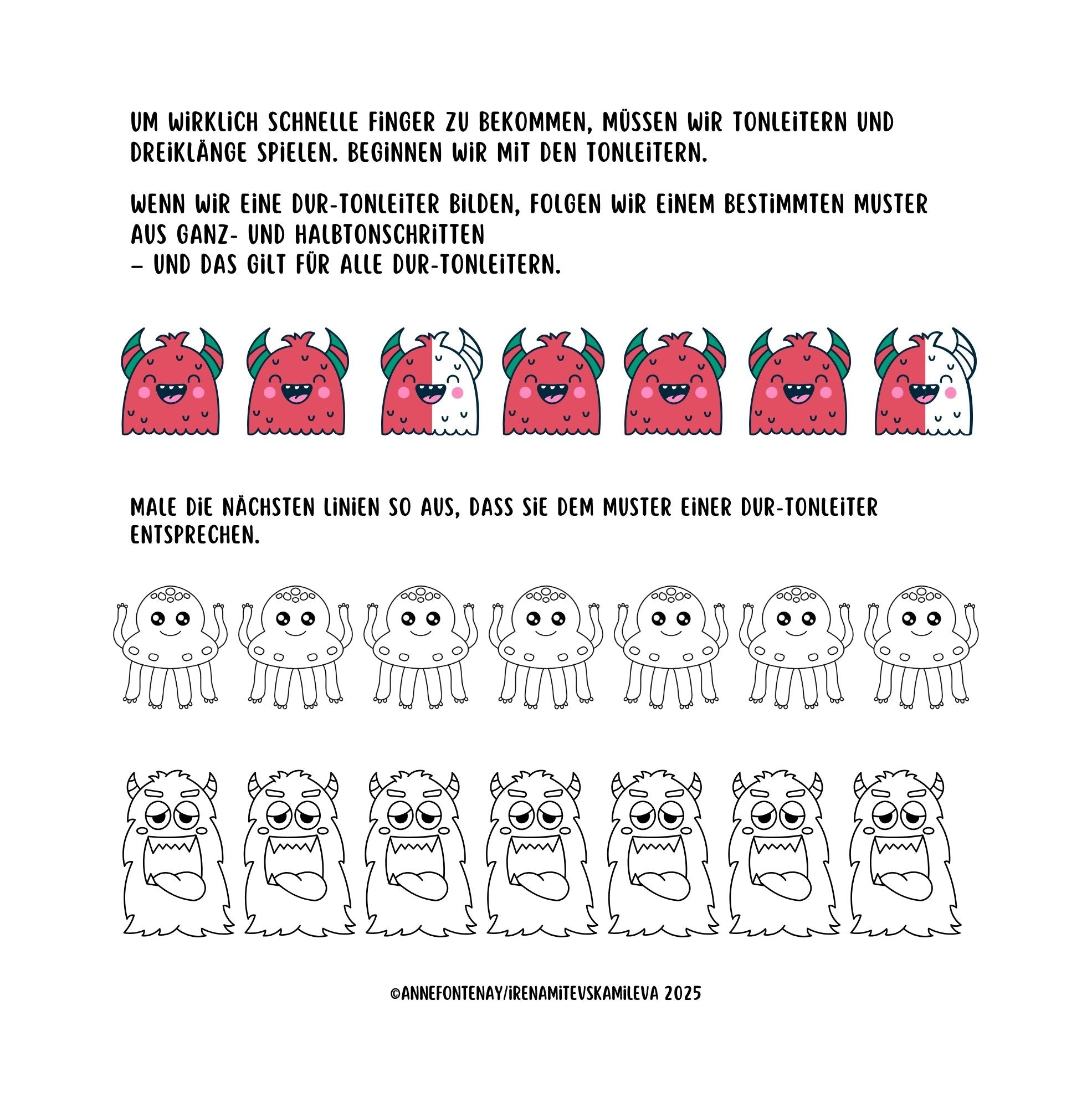Tonleitern und Dreiklänge ist ein fröhliches Aktivitätsbuch für junge Flötist:innen und eignet sich perfekt als Ergänzung zu jeder Flötenschule. Es führt spielerisch und motivierend in die Welt der Tonleitern und Dreiklänge bis zu vier Vorzeichen ein.