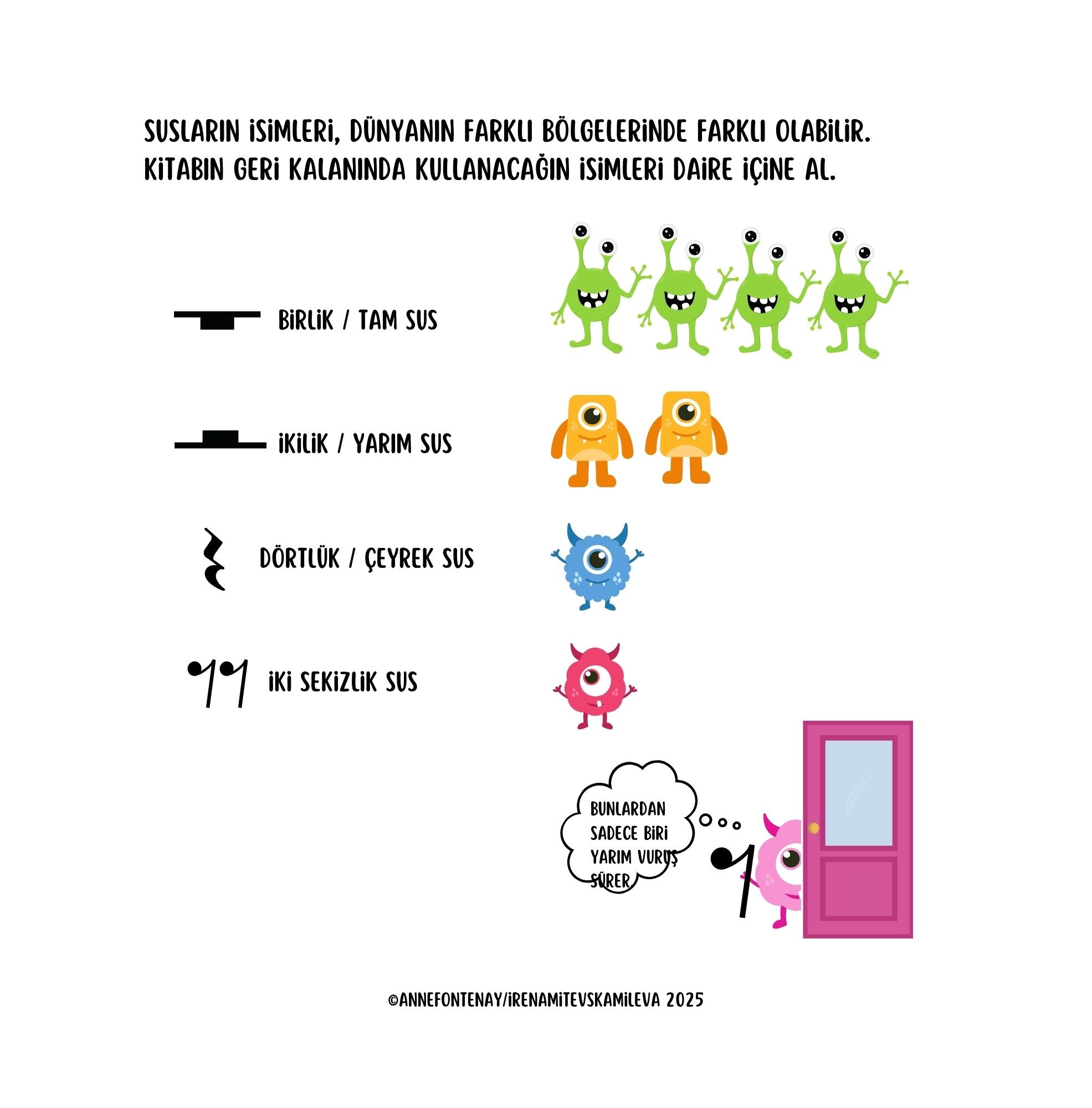 Bu kitap, öğrencilere nota değerlerini ve ritim dünyasını keyifli oyunlar ve yaratıcı alıştırmalar aracılığıyla tanıtarak ritim becerilerini ve koordinasyonlarını geliştirmelerine yardımcı olur.